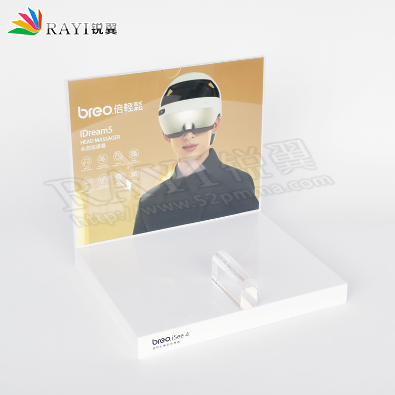 无色无味,整个展架通透靓丽。使用奶白板制造按摩仪展示架,陈列架,让人感觉卫生干净整洁,高端大气,绚丽的色彩,独特的造型构思充分的引起了顾客注意,