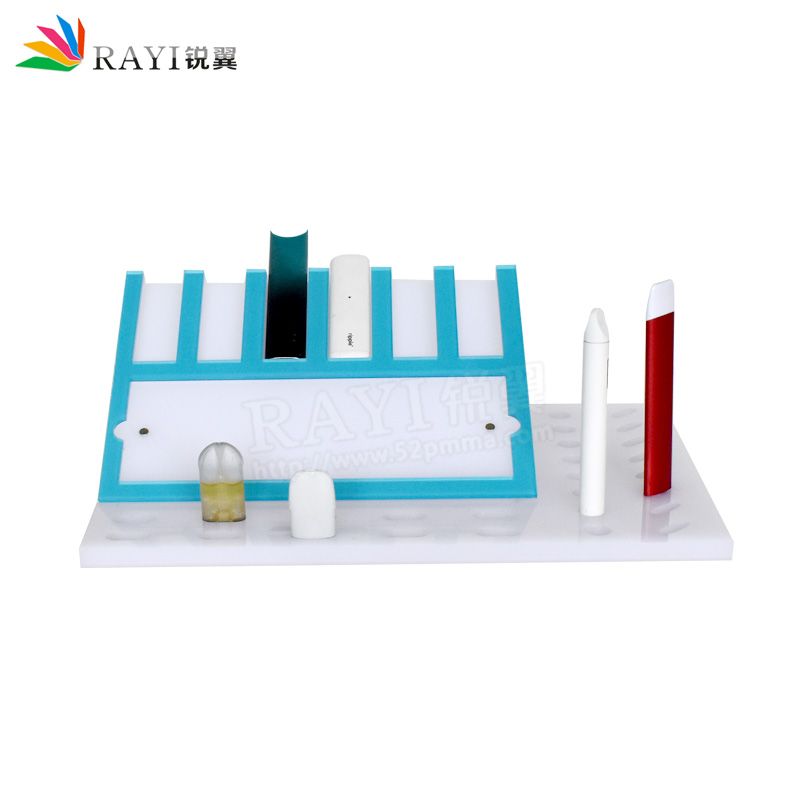 此款桌面烟弹展示架,采用10mm奶白板材通过开料,钻石抛光,布轮抛光,锣机,镭雕,打孔,粘接,防刮手处理而成,亚克力是可以用于展览展示行业的塑胶材料,无色无味,整个展架通透靓丽。使用奶白板制造烟弹展示架,陈列架,让人感觉卫生干净整洁,高端大气,绚丽的色彩,独特的造型构思充分的引起了顾客注意,使其驻足停留进而对广告中的商品产生浓厚的兴趣,最终能达到销售目的,能营造出欢快的气氛,起到推波助澜的效果!